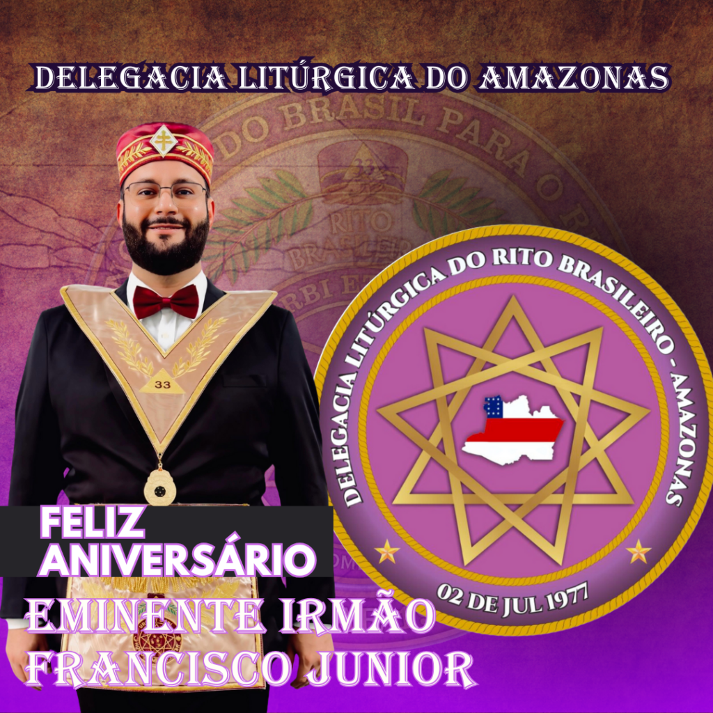 A Delegacia Litúrgica do Amazonas parabeniza o Eminente Irmão Francisco Júnior, 33º, pelo seu aniversário, comemorado hoje, dia 20 de março.